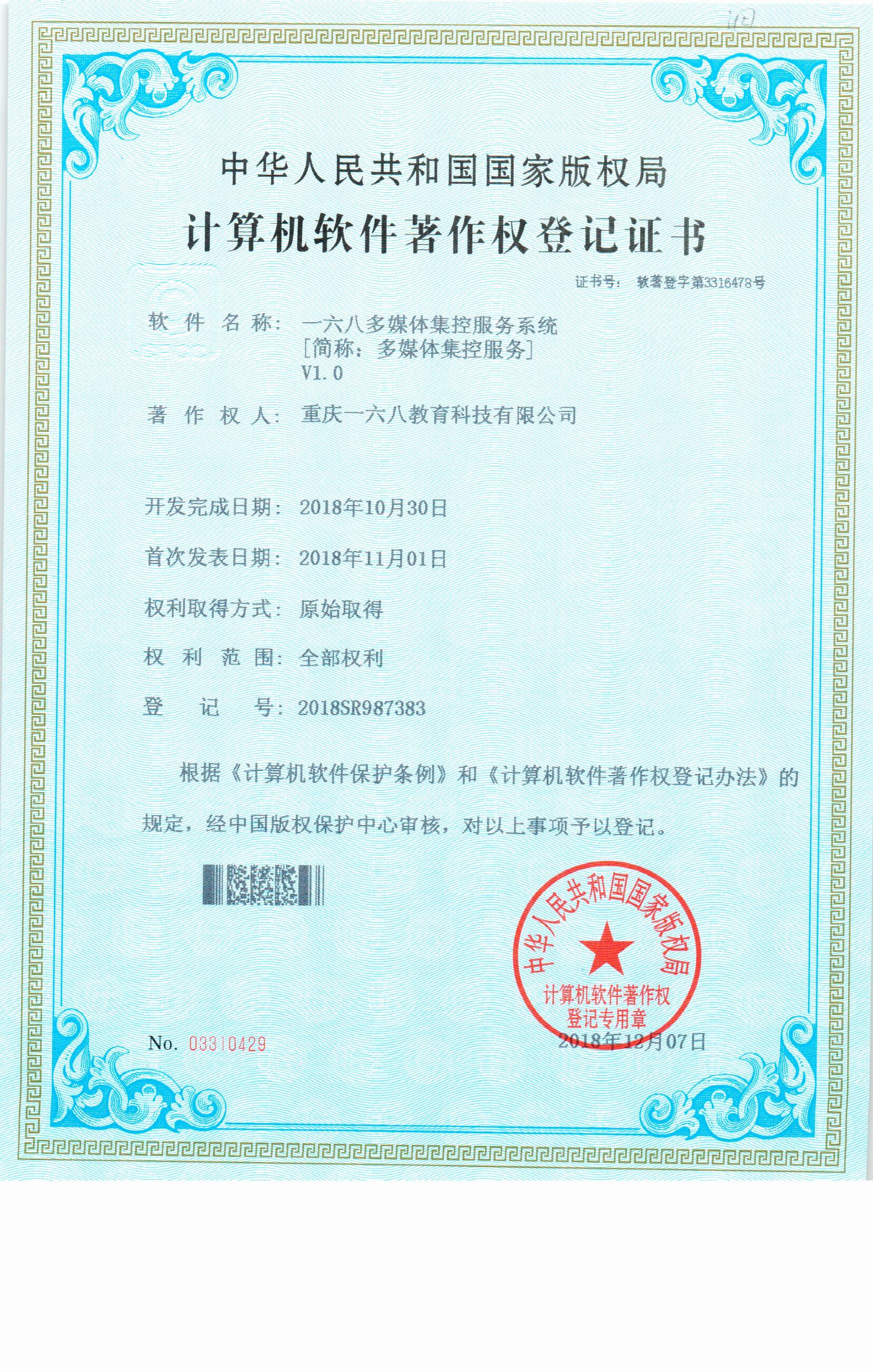 一六八多媒體集控服務系統(tǒng)著作權
