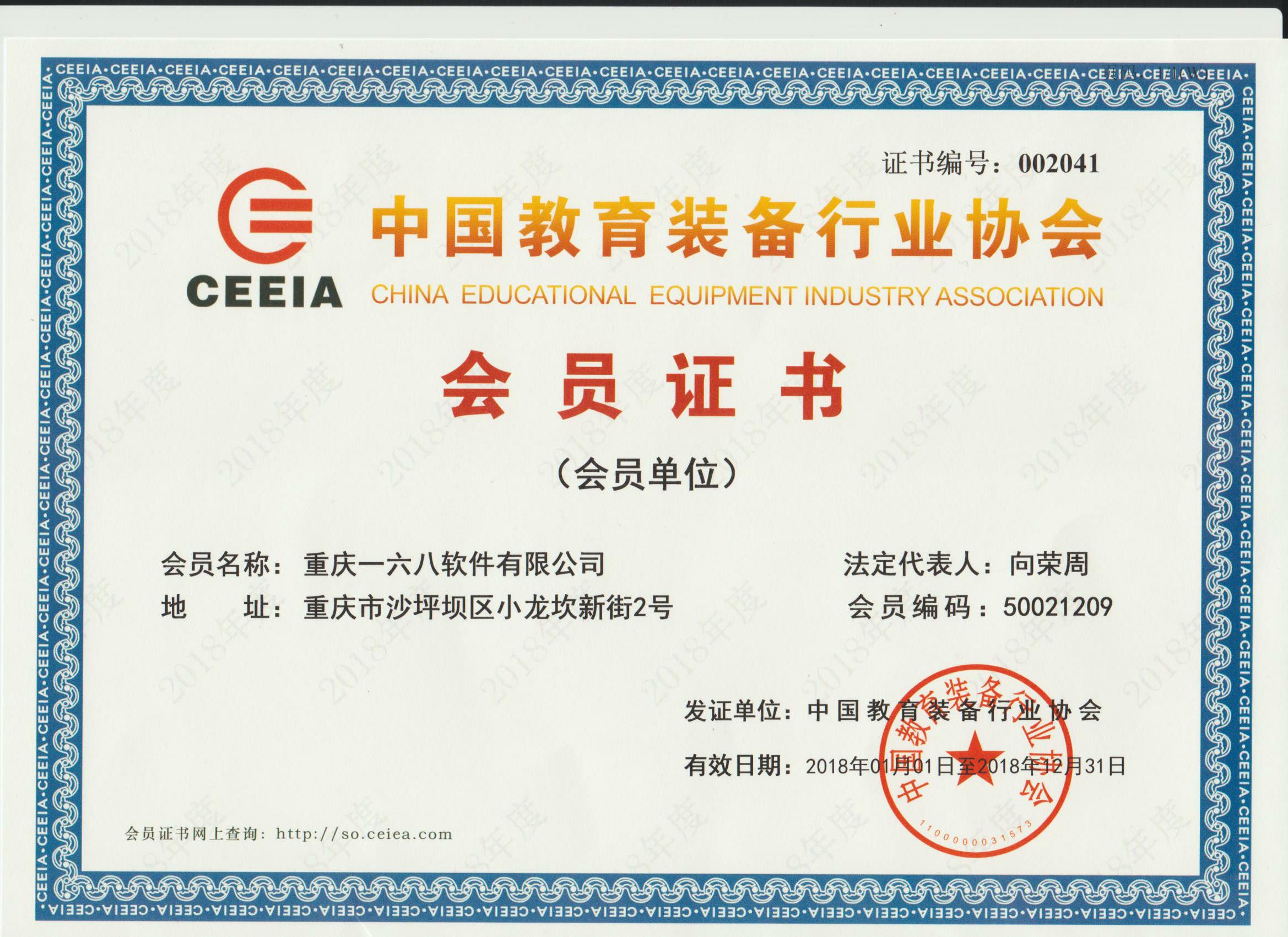 中國教育裝備行業(yè)協(xié)會會員證書
