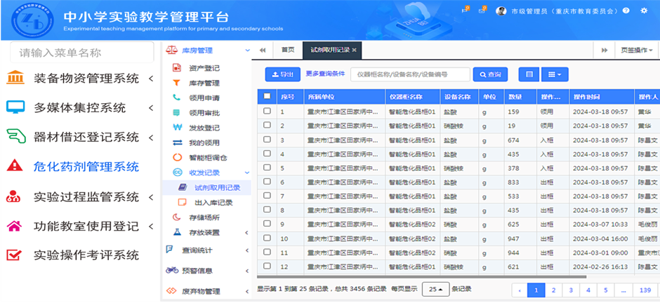 一是,能滿(mǎn)足學(xué)校、醫(yī)院、化工企業(yè)、科研院所等涉危品單位,對(duì)實(shí)驗(yàn)?;巹┥曩?gòu)、貯存、使用、廢棄處置全生命周期閉環(huán)管控需要。